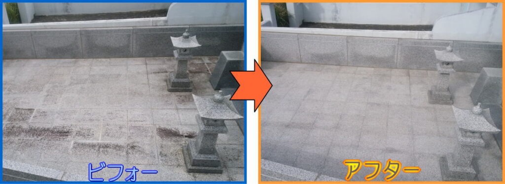 先祖代々で受け継いできたお墓になると年に数回のお墓参りのときにお墓 掃除はしているが頑固な水アカ・コケがなかなか落ちなくて困っている・・。そんな状況の大切なご先祖様のお墓を、あなた様に代わり私たちがプロの技術で真心を込めて綺麗にして少しでもお客様がご先祖様を思いやったり故人を偲ぶためにお役に立てればと思っております。